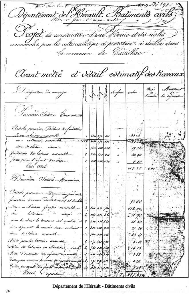 Les plans sont établis, le montant du devis de Monsieur CAUSSE est de