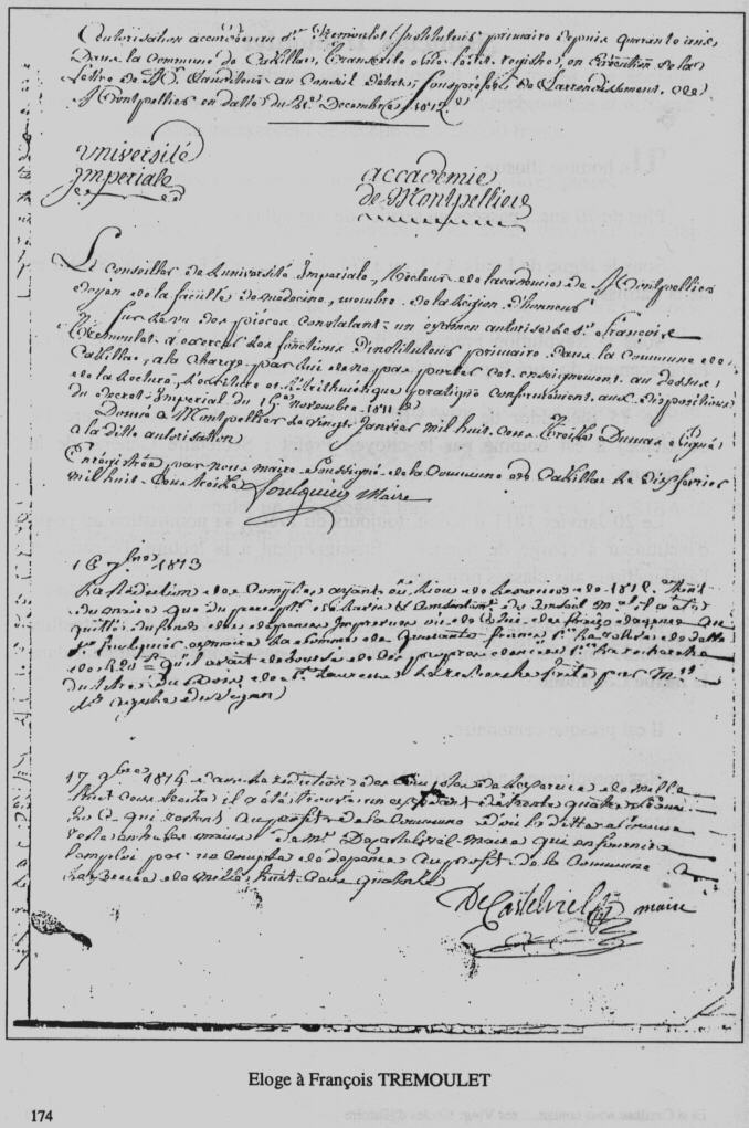 Il prend sa retraite en 1851 avec les éloges de l'Académie de Montpellier (Académie Impériale) pour ses quarante ans de poste comme instituteur dans la même Commune.