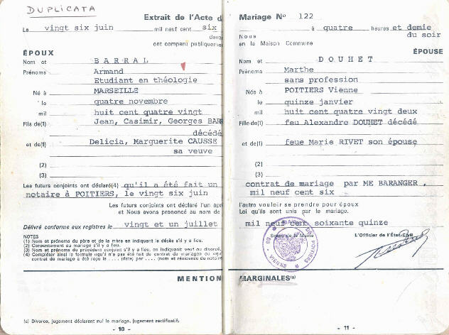 Vu chez André en mars 2003. On y retrouve le mariage avec Marthe et les cinq enfants qui suivirent...