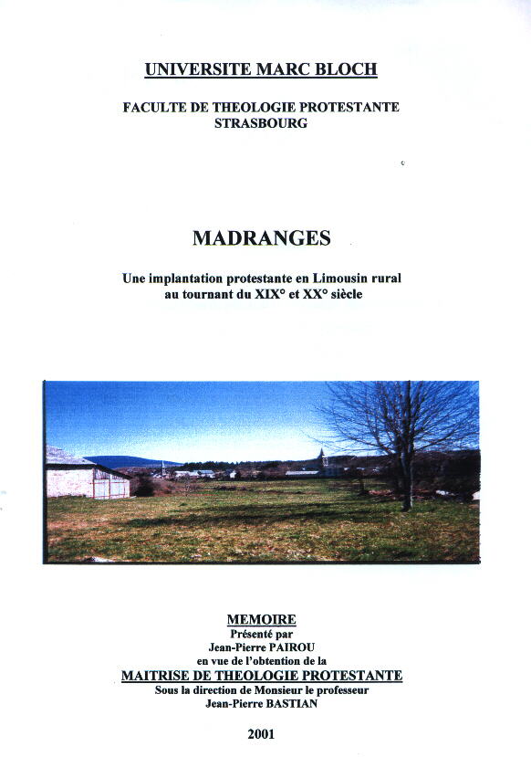 l'histoire du protestantisme à Madranges a été récemment étudiée par JP. Pairou qui en a fait son mémoire.