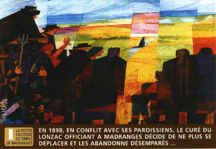 Le 11 mars 1900, est inauguré un Temple protestant à MADRANGES, petit village deHaute Corrèze. Quel évènement a bien pu provoquer cette construction pour le moins inhabituelle dans cette région ou le protestantisme avait été anéanti à la fin des 16ème et 17ème siècles? C'est une bien curieuse histoire qui commence en 1898. Madranges est alors un pauvre village, déshérité par la nature (il n'y a guère, en fait de ressources, que le seigle, le ble noir et les châtaignes), et encore plus déshérité au point de vue civil et religieux. Rattaché depuis la Révolution à la commune du LONZAC, il a depuis longtemps souffert de l'oppression communale et paroissiale.