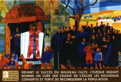 La coupe déborde lorsque le curé refuse de se déplacer pour l'enterrement du fils de Monsieur Léonard DUPUY. Le sacristain devra lui-même enterrer son propre fils. Pour les mariages, les nouveaux époux se rendent dans une paroisse voisine. Dès lors, les Madrangeois humiliés, abandonnés songent au Protestantisme.