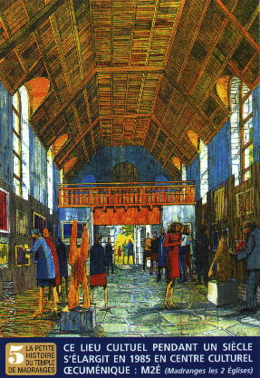 C'est ainsi que "REFORME" dans son n° du 15-22 août 1987 présentait le temple de MADRANCES sous La plume de Paul VIALLANEIX Directeur de l'hebdomadaire que nous remercions, et que nous citons partiellement ici : "Il faut pratiquer le tourisme en dehors des itinéraires consacrés par la mode pour parcourir les routes, bordées de hêtres du massif Correzien des Monedières. Madranges, à deux pas de Treignac, s'abrite dans le creux de sa combe, au milieu des prairies. La présence de 2 clochers distingue le village. L'un d'eux est celui du Temple, le seul Temple rural de tout le Bas-Limousin. La paroisse de MADRANCES naquit en 1898, d'une révolte paysanne". Article fort judicieux pour l'action de notre jeune Association, l'intérêt du protestantisme rural en France, et du Tourisme dans notre région. Ce temple n'est pas tout à fait "en danger d'oubli" puisque tout est fait pour qu'il ne le devienne pas mais nous pensons que son originalité (les raisons de sa construction d'une part et sa réutilisation d'autre part) mérite de le faire participer au CONCOURS.