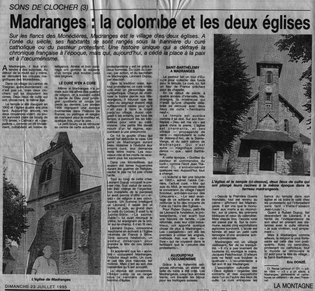 Le protestantisme à Madranges - Revue de presse