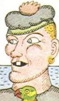 Le personnage emblématique qui à fait le succès de la série, espèce de capitaine « pirate » colérique impulsif et violent, il devient doux avec les enfants. Au fur et à mesure des épisodes il passe du statut de contrebandier à celui plus respectable de simple capitaine de commerce au long cours. | ||