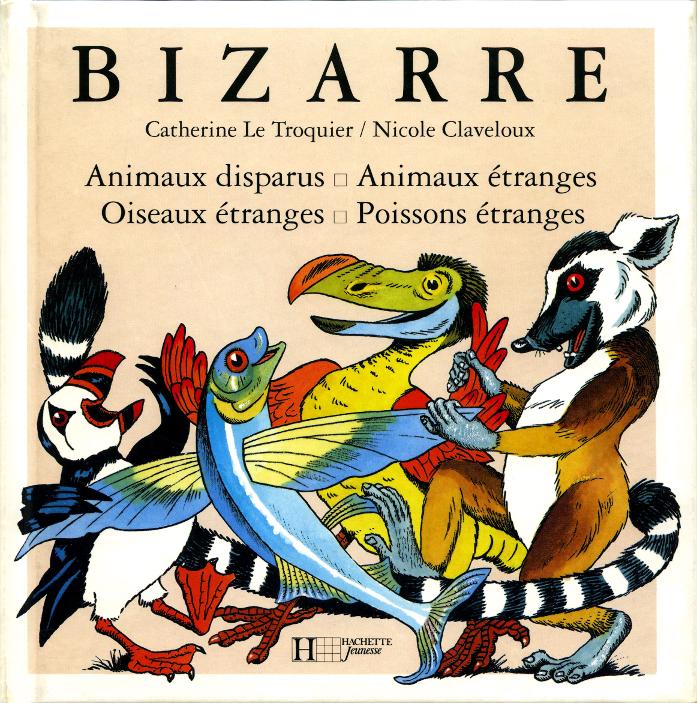 En première partie du spectacle, l'occasion a semblé bonne de vous présenter également d'autres illustrations animalières en témoignage du talent de N.C. dans ce domaine – talent tôt repéré et mis à contribution dans Okapi. Tout d'abord en couverture, puis dans les Univers et occasionnellement au profit de la rubrique Animaux mes amis. À la fin des années 1970, pour se délasser de Grabote, Nicole Claveloux se met à dessiner des poux dont elle finit par constituer tout un catalogue qui est exposé à la galerie de l'éditeur Harlin Quist en avril 1979, et dont Okapi montre des extraits dans un Univers479 espèces de poux seront rassemblées plus tard dans un album publié par Gallimard/Le Sourire qui mord en 1985 (ISBN 2-86434-015-1 ; réédité en 1999 par Être éditions : ISBN 2-84407-011-6). Pour ceux qui souhaiteraient aller plus loin dans ce domaine, NC a illustré en 1993 pour Hachette une série de 4 volumes sur des textes de Catherine Le Troquier : Animaux étranges – Poissons étranges – Animaux disparus – Oiseaux étranges , sous le titre collectif Bizarre, mais vrai! (ISBN 2-01-020234-1 / 2-01-020035-7 / 2-01-020036-5 / 2-01-020037-3 ou, pour les amateurs de tout en un, édité également en volume unique, ISBN 2-01-021211-8). On peut aussi mentionner Les Animaux qui nous font peur, un livre de Marie Farré paru en 1986 dans la collection « Découverte benjamin » de Gallimard, dont le petit format et le lettrage envahissant ne rendent pas vraiment justice aux gouaches réalisées par NC pour l'occasion (ISBN 2-07-039737-8). Mais tous ces livres sont épuisés !.