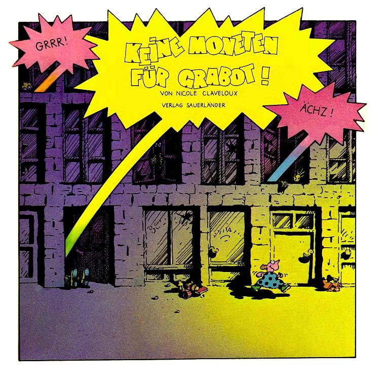 1973 Le premier album de Grabote est paru aux États-Unis à l'automne 1973, publié par Harlin Quist – premier éditeur de Nicole Claveloux et pour qui elle avait illustré ou participé à une douzaine d'albums depuis 1968. C'était également une première pour NC, qui signait là à la fois les dessins et le texte, ce qui explique peut-être qu'elle n'en ait pas été entièrement satisfaite...