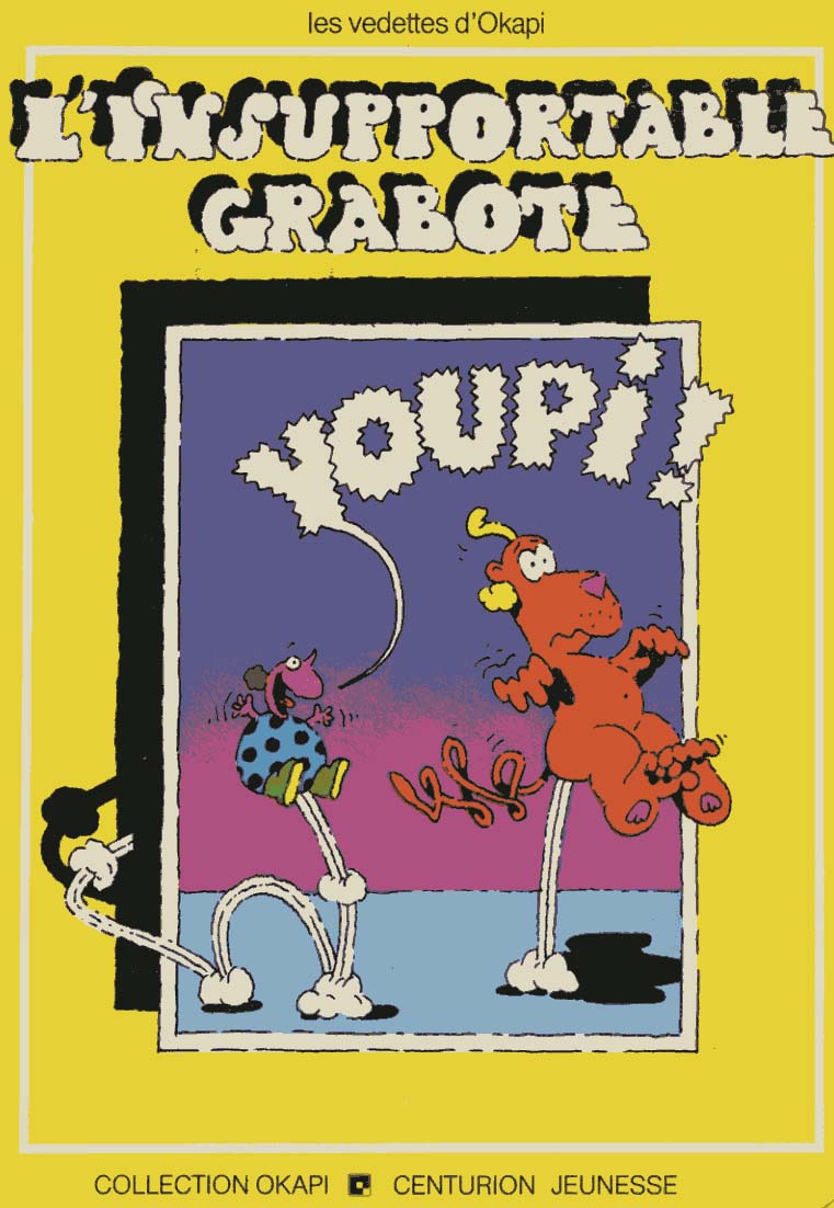 1975 Il faut attendre mai 1975 pour que Bayard Presse se décide à publier un recueil des premiers épisodes de Grabote, parus dans Okapi entre 1973 et 1974. Cet album reprend les 50 premières planches (ou presque  : pas la toute première, sans paroles et trop différente des autres, ni la 33e, trop spéciale dans sa référence à un fait-divers). Malheureusement les 150 épisodes suivants resteront dans les pages d'Okapi... Bayard Presse avait en effet confié la publication de cette première «  collection Okapi  » à sa branche éditrice, Le Centurion, spécialisée dans la littérature religieuse  ! Autant dire que ces albums, peu ou mal diffusés, n'ont pas tardé à partir au pilon, et qu'il n'est pas si évident aujourd'hui d'en retrouver un exemplaire... (ISBN 2-227-80034-8)
