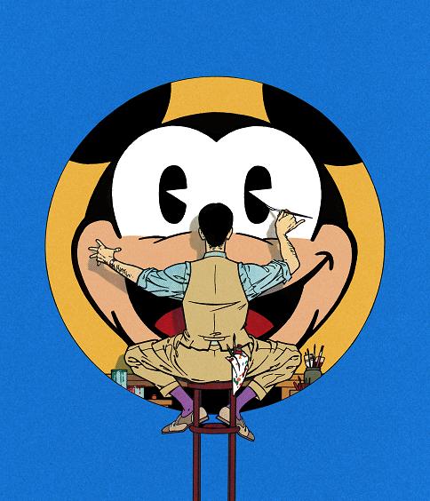 En de rares occasions, « l'histoire vraie » a trouvé place en couverture (n° 277, 283, 316) et pour représenter la rubrique, nous avons choisi cette illustration de Gilles Grimon montrant Walt Disney qui invente Mickey en 1928 (Okapi n° 316, du 15 au 31 janvier 1985).